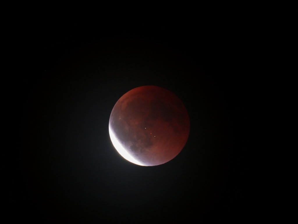 Unser langjähriges Mitglied Michel Honlet hat ihn mit der Kamera festgehalten. Das Einzigartige und Besondere an dieser Aufnahme ist nicht die Mondfinsternis selbst, die sich ja immer mal wieder am Himmel zeigt, sondern die 3 Sateliten, die während der Aufnahme zwischen Mond und Kamera geflogen sind. Haben Sie sie schon entdeckt?